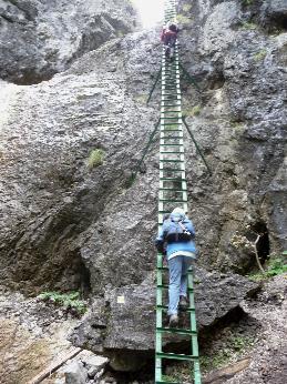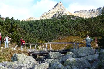 Bereits am ersten Tag besteigt unsere Gruppe den nahegelegenen Gipfel des Risy, 2499 Meter hoch - allerdings ohne Karin und mich, da Karin bei Beginn des Aufstieges stürzt und sich den rechten Arm bricht. Am Gipfel des Risy verläuft genau die Landesgrenze, es ist möglich, mit einem Bein in der Slowakei und dem anderen in Polen zu stehen. Die Gipfelerstürmer haben klaren Blick bei herrlicher Sonne und blauem Himmel weit ins Zipser Land hinein, nur leider ist es, weil Sonntag, am Gipfel etwas bevölkert!