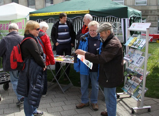 Mit neu gestalteten Infotafeln, die unsere Aktivitäten sehr ansprechend darstellen, und vielen neuen und bewährten Informationsmaterialien waren wir auch dieses Jahr wieder bei der Maiveranstaltung des DGB dabei. Wieder fand diese am Rheinufer statt, und auch diesmal hatten wir viele Interessierte, mit denen wir angeregte Gespräche führten und sie über die NaturFreunde informieren konnten.