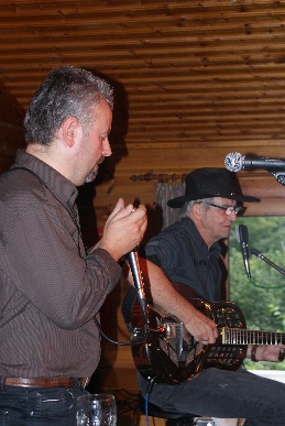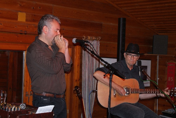 Eine Reise durch das Land des Blues erwartete die 40 Besucherinnen und Besucher, die sich an diesem Nachmittag im Naturfreundehaus einfanden. Und was für eine Reise: "Professor Bottleneck" Rolf Heimann (Gitarren) und Frank Born (Mundharmonikas) boten uns Blues vom Feinsten. Nicht nur, dass sie ihre Instrumente perfekt beherrschten und ihnen Töne entlockten, die eigentlich fast nicht möglich sind. Auch die Harmonie der beiden Musiker und die Arrangements zeigten, dass sie Meister ihres Fachs sind.