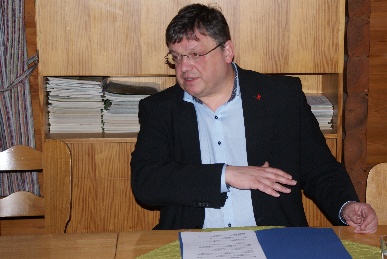 Zu einer musikalisch-literarischen Reise um die Welt mit Klaus Grabenhorst luden die NaturFreunde an diesem Vortag des 1. Mai ein, und fast 90 "Mitreisende" fanden den Weg ins Naturfreundehaus. Denn es war eine besondere Veranstaltung, die da geboten wurde: Klaus Grabenhorst feierte an diesem Nachmittag sein 40. Bühnenjubiläum. Und so war es gleichzeitig auch eine Reise durch Klaus Grabenhorsts Leben und Wirken, und viele Musiker, mit denen Klaus Grabenhorst in seinen verschiedenen Programmen aufgetreten ist, ließen es sich nicht nehmen, auch auf der Bühne vorbeizuschauen und gemeinsam mit ihm zu musizieren. Jens Barabasch begleitete auf seinen Flöten fast den gesamten Nachmittag, zu einzelnen Stücken kamen dann Professor Bottleneck auf der Gitarre, Smeety auf der Mundharmonika und Jochen Nerhausen mit der Saz. Slavka begeisterte das Publikum mit dem lebhaft vorgetragenen russischen Lied vom wilden Eber.