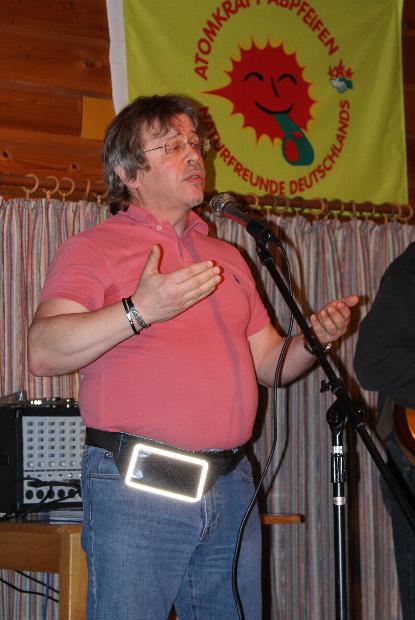 In die eigene Vergangenheit als Straßenmusiker führte der Beton-City-Blues, seinen Erzählungen über den Wiederstand gegen das geplante Kernkraftwerk in Wyhl folgte das Lied "Mir sin eifach wieder do". Das Massaker auf dem Platz des himmlischen Friedens war genau so Thema eines Gedichts wie das Leid vieler Kinder und Jugendlicher im Kongo, die unter übelsten Bedingungen Coltan für Kondensatoren in Handys abbauen müssen, ein Gedicht übrigens, das Ernesto Cardenal geschrieben hat.