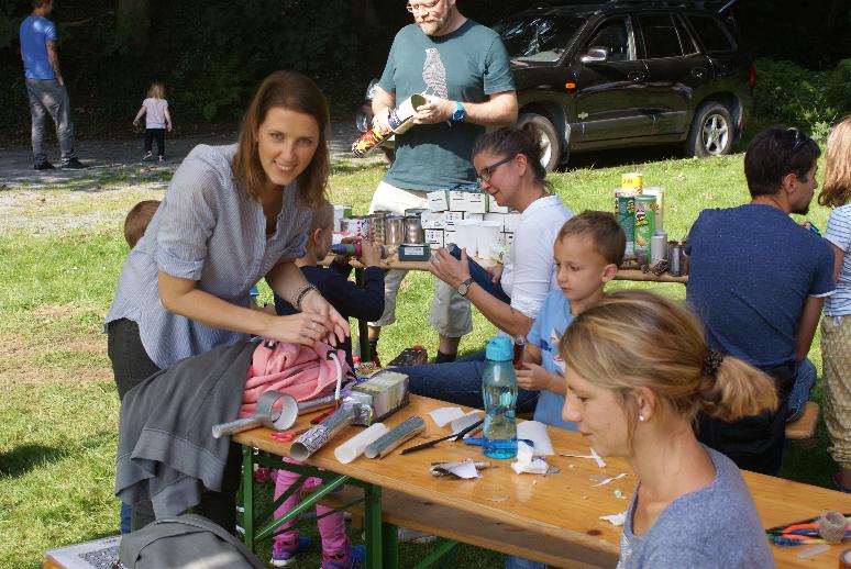 Erfreulich, dass auch viele Familien mit Kindern da waren. Für sie haben wir ein Upcycling angeboten: aus Tetrapacks, Konservendosen, Küchenrollen oder Kronkorken wurden witzige Musikinstrumente und andere Dinge gebastelt. Die Kinder und ihre Eltern ließen ihrer Kreativität freien Lauf und hatten viel Spaß bei dieser Bastelaktion.