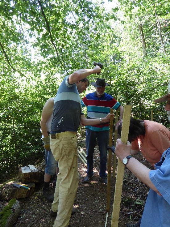 Aber wir wollten es ja nicht bei tollen Bildern und der Theorie belassen, sondern wir wollen auch selbst etwas am Naturfreundehaus tun, um noch mehr Totholzlebensraum dort zu schaffen. Von den Vorschlägen, die Farina uns aufzeigte, einigten wir uns relativ schnell auf eine Totholzhecke, bzw. - wenn neue Pflanzen sich darin ansiedeln - eine Benjeshecke. So wollen wir den Astschnitt, der bei uns auf dem Gelände immer anfällt, an einer Stelle aufstapeln, unterstützt von eingeschlagenen Pfosten, die diese Konstruktion stabil halten. In den Zwischenräumen zwischen den Ästen können dann Säugetiere wie Igel, aber auch viele Vogelarten wie Zaunkönig oder Heckenbraunelle einen Lebensraum finden, aber auch Amphibien oder Insekten fühlen sich darin wohl. Nun müssen wir nur noch einen Termin finden, an dem wir mit dem Bau beginnen - die Hecke wird dann im Laufe der Zeit immer weiter anwachsen, wenn neue Äste dazukommen.