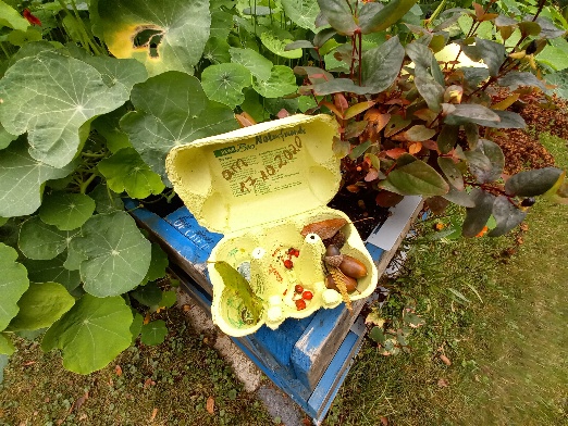 Am 17.10. sind wir gemeinsam mit den Kindern in den Wald um das Naturfreundehaus gegangen. Wir haben eine Waldschatzsuche gemacht und danach mit unseren Schätzen gebastelt, z.B. ist eine schöne Kastanienkette und ein Mobile aus kleinen Ästen für den Garten entstanden.