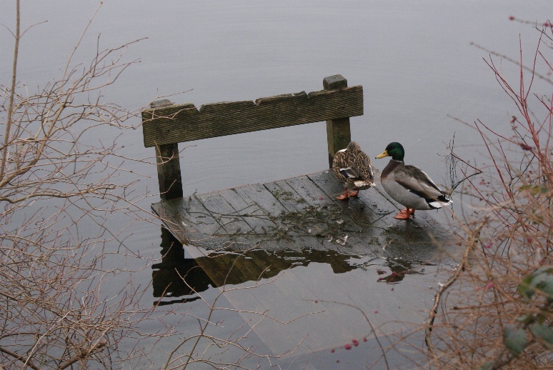 Wenn wir ans Ostufer kommen, können wir durch die Bäume zwei künstliche bewachsene Inseln im See erkennen. Es handelt sich hier um einen Versuch, etwas weiter weg vom beschattenden Ufer künstliche Schilfzonen im See einzurichten. So soll Vögeln, die im Schilf brüten, eine Brutmöglichkeit geschaffen werden.