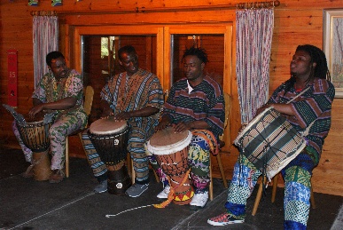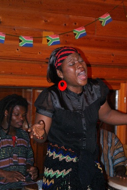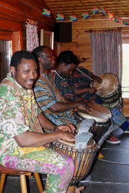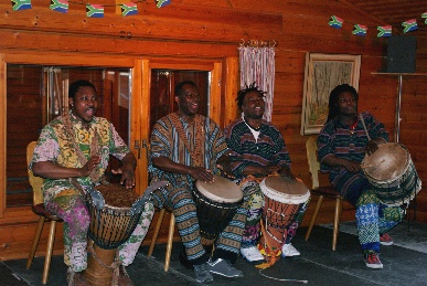 Oder man genoss das schöne Wetter im Freien, bis die Gruppe Togovio traditionelle südafrikanische Musik, aber auch bekanntere Stücke wie "The Lion sleeps tonight" spielte. Unterstützt von vier Trommlern begeisterte die Sängerin mit ihrer tollen ausdrucksvollen Stimme, gefühlvolle Balladen wechselten sich ab mit wilden Trommeleinlagen. Da die Stimmung, die die Gruppe rüberbrachte, sich ohnehin nur schwer beschreiben lässt, lassen wir einfach noch ein paar Bilder sprechen: