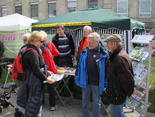 Mit neu gestalteten Infotafeln, die unsere Aktivitäten sehr ansprechend darstellen, und vielen neuen und bewährten Informationsmaterialien waren wir auch dieses Jahr wieder bei der Maiveranstaltung des DGB dabei. Wieder fand diese am Rheinufer statt, und auch diesmal hatten wir viele Interessierte, mit denen wir angeregte Gespräche führten und sie über die NaturFreunde informieren konnten.