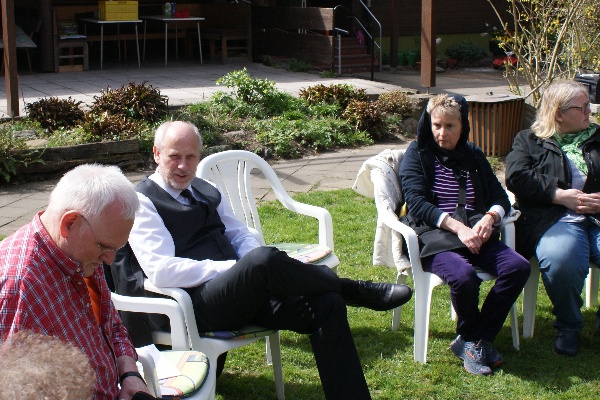 Unser Gast bei dieser Auftaktveranstaltung war Karl-Heinz Krems, selbst langjähriger Naturfreund, Staatssekretär im Justizministerium, stellvertretender SPD-Vorsitzender in Düsseldorf und einer der Sprecher der Bürgerinitiative gegen die Stadtautobahn L 404n. Allerdings mussten wir gleich zum Auftakt improvisieren und die beiden Teile "politische Diskussion" und "Wandern" nacheinander statt zusammen durchführen. Drei Themen hatte Karl-Heinz für die Diskussion mitgebracht: Flüchtlingspolitik, die umweltpolitischen Vorhaben der Landesregierung und die Stadtautobahn L 404n. Gleich das erste Thema erwies sich allerdings als so interessant für die in der Sonne versammelte Teilnehmerrunde, dass wir gar nicht mehr zu den anderen beiden Themengebieten kamen. Denn wiewohl das Thema Flüchtlinge derzeit in allen Medien ist, so gab es doch immensen Informationsbedarf der Anwesenden hierzu: über die rechtlichen Rahmenbedingungen, die offiziellen Hilfsangebote, aber auch darüber, wie jeder einzelne - oder auch wir als Verein - Hilfe bieten kann.