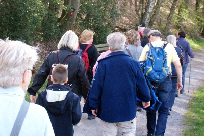 Bei strahlendem Frühlingswetter starteten wir in unsere neue Veranstaltungsreihe "Politik zu Fuß". Wandern und Gesellschaftspolitik, diese beiden wichtigen Elemente unserer Arbeit wollen wir mit dieser Veranstaltung verknüpfen. Das ist nun keine ganz neue Idee, wie Matthias Möller in seiner Begrüßung ausführte, schließlich war es schon 1895 bei der Gründung der NaturFreunde das Ziel, die Arbeiter zum Wandern in die Natur zu führen, um dort aus Arbeitstieren Arbeitsmenschen zu machen, die gesellschaftliche Veränderungen anstoßen können. Das tat aber den Erwartungen, mit denen etwa 25 Teilnehmerinnen und Teilnehmern gekommen sind, keinen Abbruch.