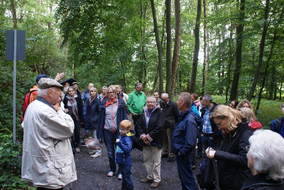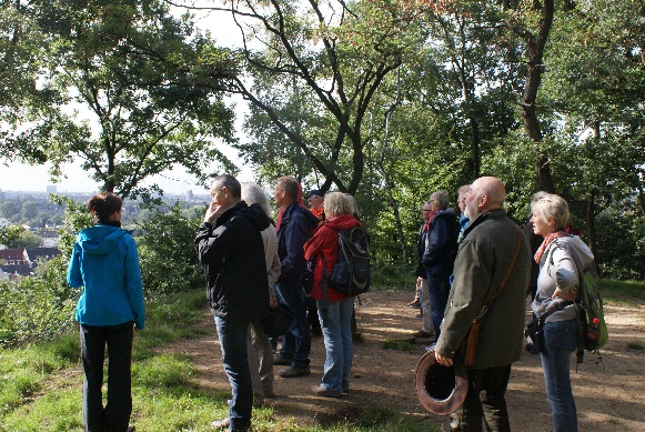 Auf der anschließenden etwa einstündigen Wanderung nach Haus Morp und zum Aussichtspunkt auf dem Gerresheimer Sandberg konnten die TeilnehmerInnen in kleinen Gesprächsrunden weiterdiskutieren und auch die trotz etwas regnerischem Wetter einladende Natur genießen.