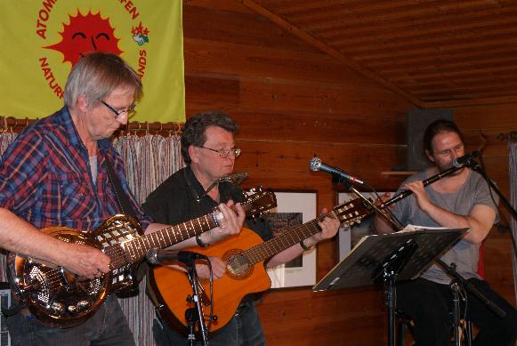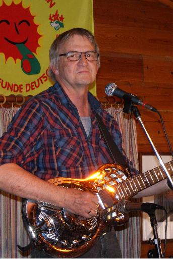 Gemeinsam mit Professor Bottleneck ging es dann nach Amerika, von Woody Guthrie bekamen wir das "Lied von der Gewerkschafterin" oder die inoffizielle amerikanische Hymne "This land ist your land" zu hören, von Bob Dylan "Knocking on heavens door". Viel zu schnell ging der Nachmittag mit Liedern, Gedichten und Geschichten rum, und nicht ohne eine ausgiebige Zugabe entließen die begeisterten Zuschauerinnen und Zuschauer Klaus Grabenhorst und seine Mitmusiker.