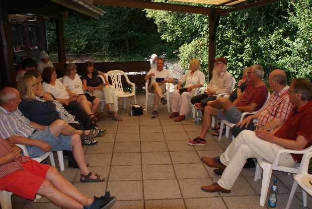 Eine spannende Diskussionsrunde also, die sich auf der Terrasse des Naturfreundehauses entspann. Und so verzichteten wir zugunsten weiterer Diskussionszeit (und auch aufgrund der großen Hitze) auf die eigentlich geplante kurze Wanderung mit Thomas Geisel. Stattdessen ging es gleich zum Waffelessen über.