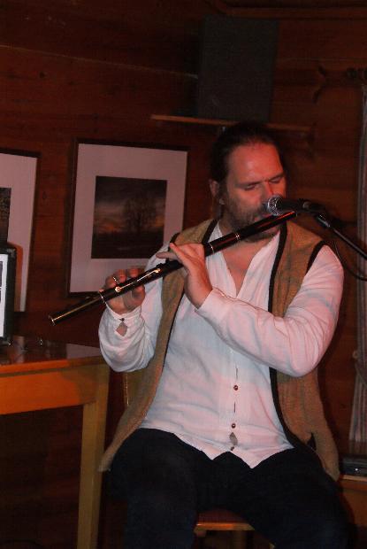 Knapp 40 Zuschauer*innen kamen an diesem Sonntagnachmittag ins Naturfreundehaus, und sie haben es definitiv nicht bereut. Erlebten sie doch die Premiere des neuen Programms von Klaus Grabenhorst (Gesang, Gitarre, Texte) und Jens Barabasch (Flöten). Unter dem Titel "Heute hier, morgen dort" präsentierten sie bekannte und unbekanntere Lieder von Hannes Wader, ergänzt um Hintergründe und Anekdoten aus seinem Leben, entnommen Waders Biografie "Trotz alledem".