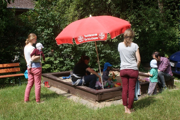Bei herrlichem Sonnenschein haben wir uns am 13.06. erstmals mit 5 Erwachsenen und 5 Kindern am Naturfreundehaus getroffen, um uns in lockerem Rahmen kennen zu lernen. Während die Erwachsenen etwas über die NaturFreunde und ihre Aktivitäten erfuhren, das Haus in Augenschein nahmen oder sich über die neu entstandenen Hochbeete austauschten, konnten die Kinder auf der Wiese, im Sandkasten oder auf der Wippe zusammen spielen. Und auch ein kleines Picknick durfte nicht fehlen, auch wenn wir Corona-bedingt auf abgepackte Leckereien sowie für jede Familie selbst mitgebrachtes Obst und Gemüse zurückgreifen mussten.