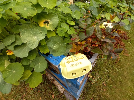 Auf insgesamt sechs Familien ist unsere Gruppe schon angewachsen, als wir am 15.08. die Hochbeete am Naturfreundehaus mit weiteren Blumenkästen bereichern. Nach einer kurzen Begrüßungsrunde sind wir erst mal in den Wald, Erde und Steine sammeln. Damit haben wir dann unsere Blumenkästen gefüllt und bepflanzt - fertige Blumenkästen, die nur noch eingehängt werden müssen und selbstgebastelte, für die wir einfach Bretter an die Füße der Europaletten angeschraubt haben. Dabei können auch die Kleinen gut mithelfen - beim Einfüllen der Erde, beim Bepflanzen, Aussäen und Gießen der Blumen sind sie mit Eifer dabei. Und als Erinnerung hat jedes Kind auch noch ein kleines Töpfchen mit gesäten Blumen mit nach Hause genommen.