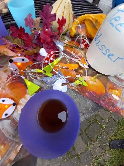 Während der Wartezeit gab es einen leckeren Apfelkuchen , Apfelsaft und natürlich durfte auch gespielt und mit Kreide oder Wachsmalstiften gemalt werden - natürlich alles unter dem Motto Äpfel.