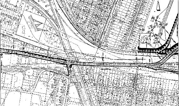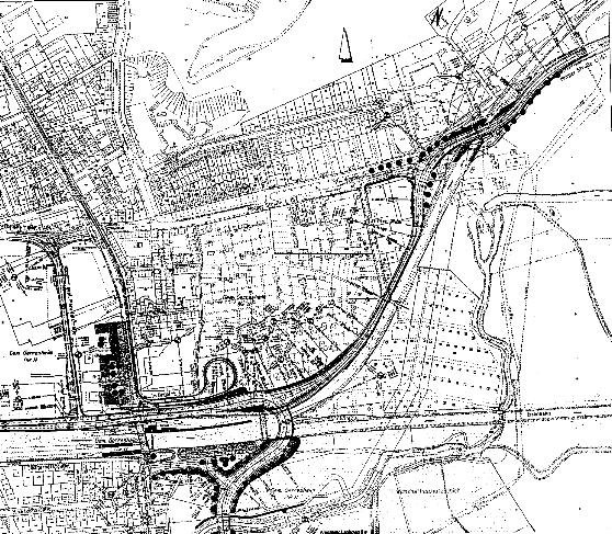 dann ab der neuen Rampenbrücke zunächst nördlich, dann